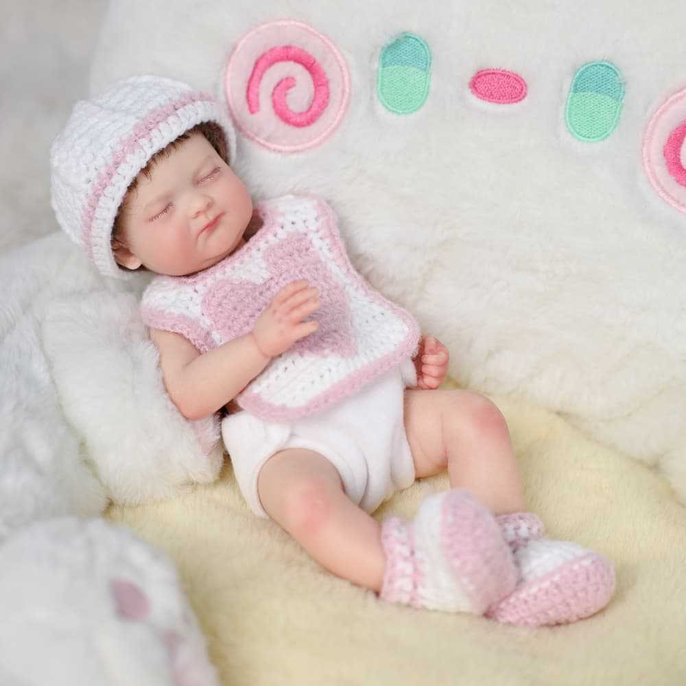 This 12 inch solid silicone reborn baby doll is crafted with realistic proportions and high-definition detailing for a lifelike newborn representation. Available in two versions—open-eyes for awake realism and sleeping (closed-eyes) for a peaceful newborn look—this doll is designed for both collectors and educational/play use. Its sturdy silicone body and soft-touch finish make it suitable for child interaction, role play, therapy, or as a collectible display piece.