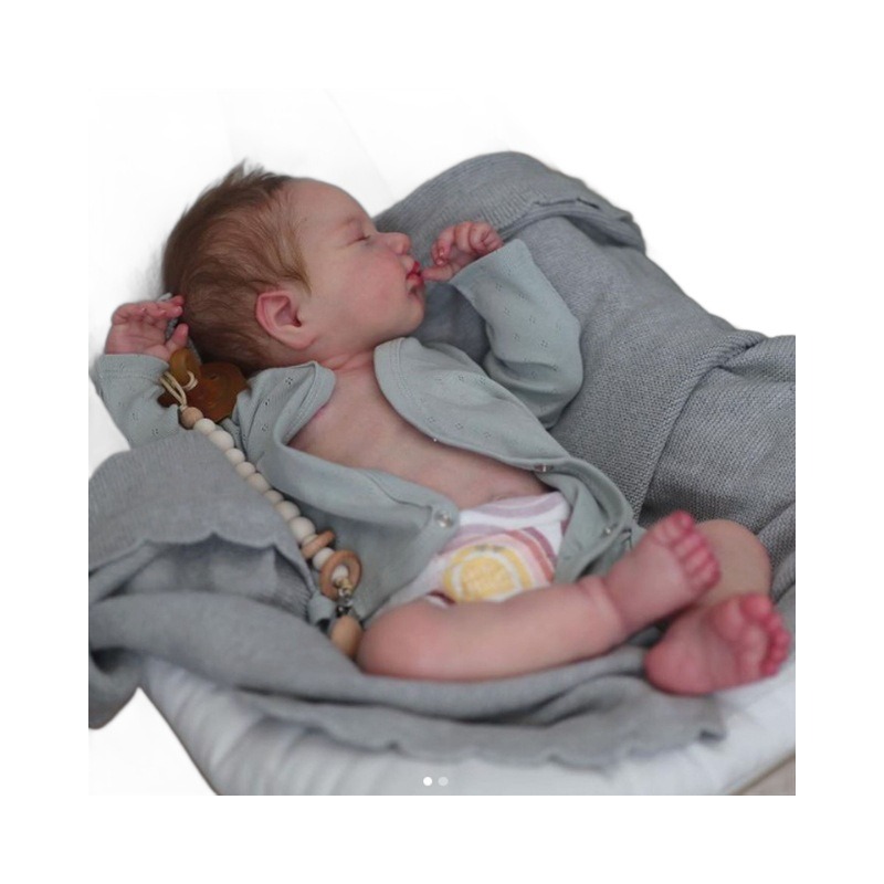 This 19-inch lifelike silicone reborn baby doll replicates the softness, weight and detail of a real newborn. Handcrafted using 100% platinum-cured silicone, it delivers a highly realistic tactile feel—slightly stretchy, soft to the touch and fully poseable. Featuring a natural sleeping expression with detailed skin effects, it is ideal for collectors, therapy institutions, emotional wellness use and luxury memory gifting.