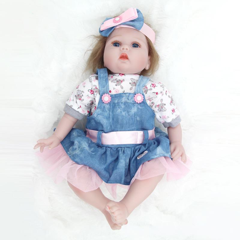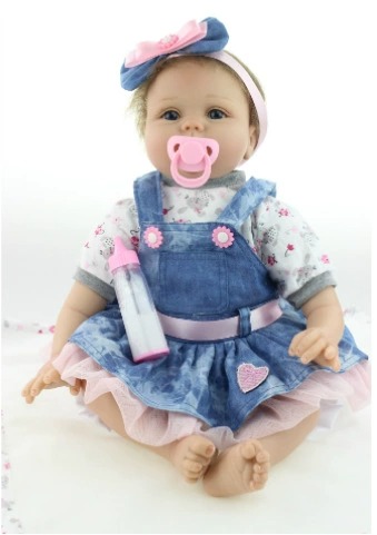 22 inch Soft Cloth Body Reborn Silicone Doll – Denim Dress Edition
