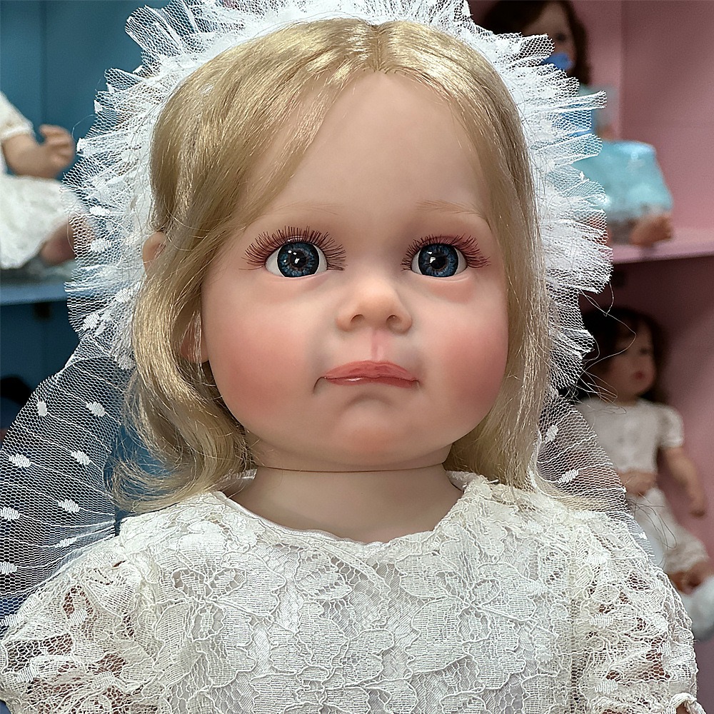 Details: 3D hand-painted veins, rosy cheeks, and hand-applied eyelashes.