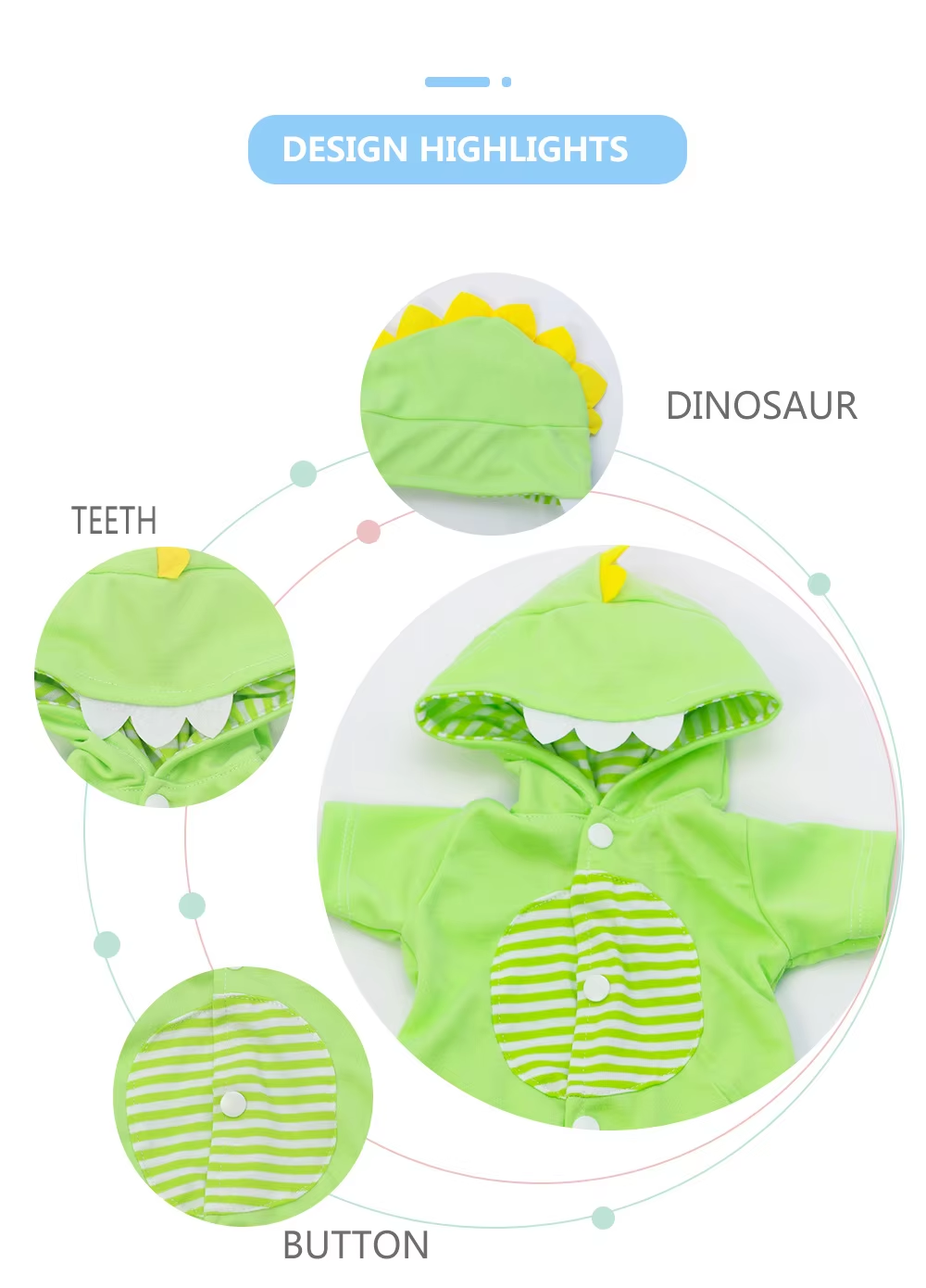 Available in cute animal themes such as dinosaur, mouse, and rabbit—appealing for gift sets, doll boutiques, toy stores, and custom brand collections.