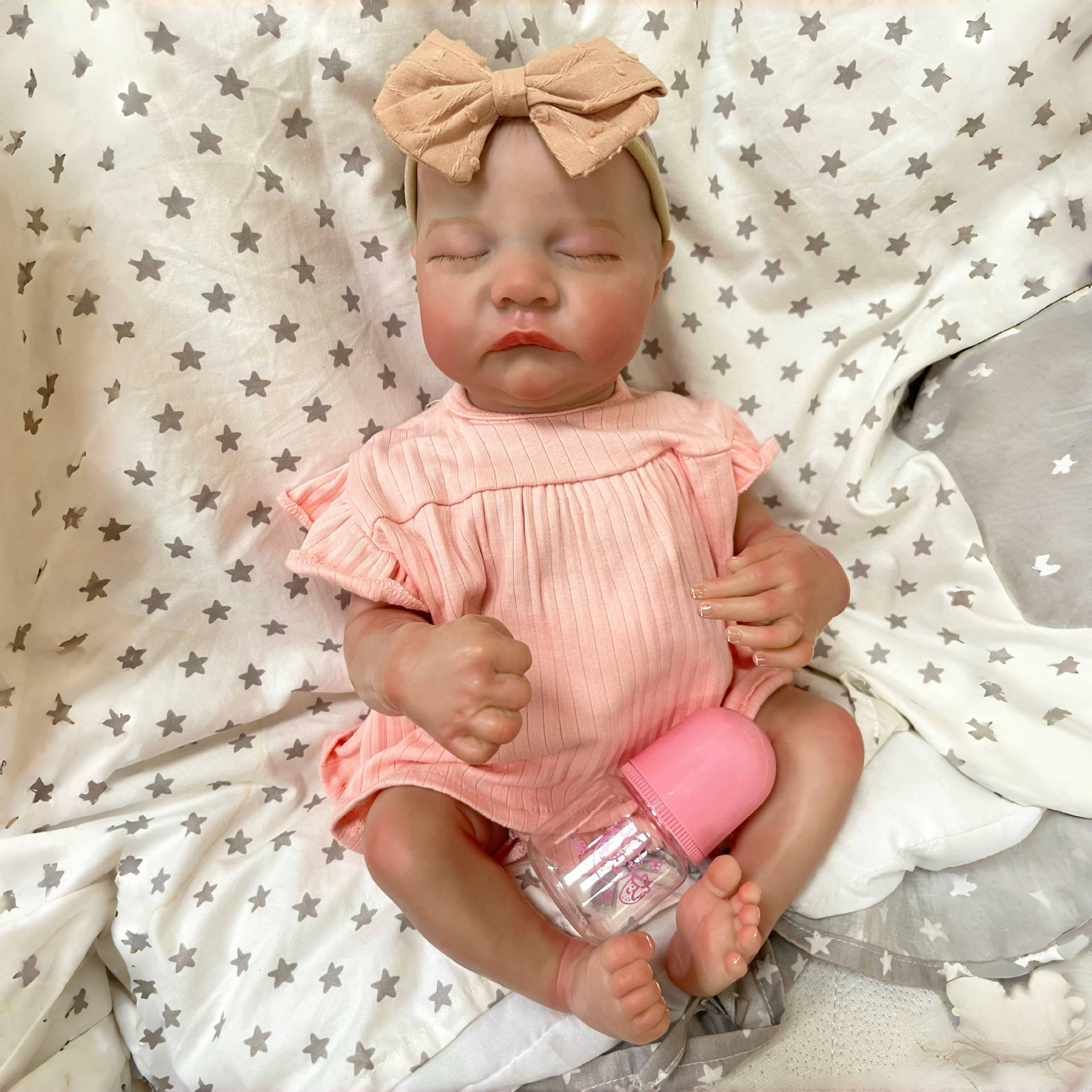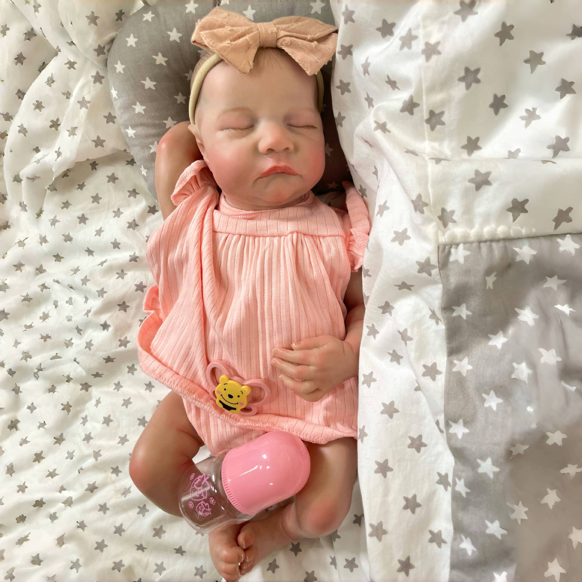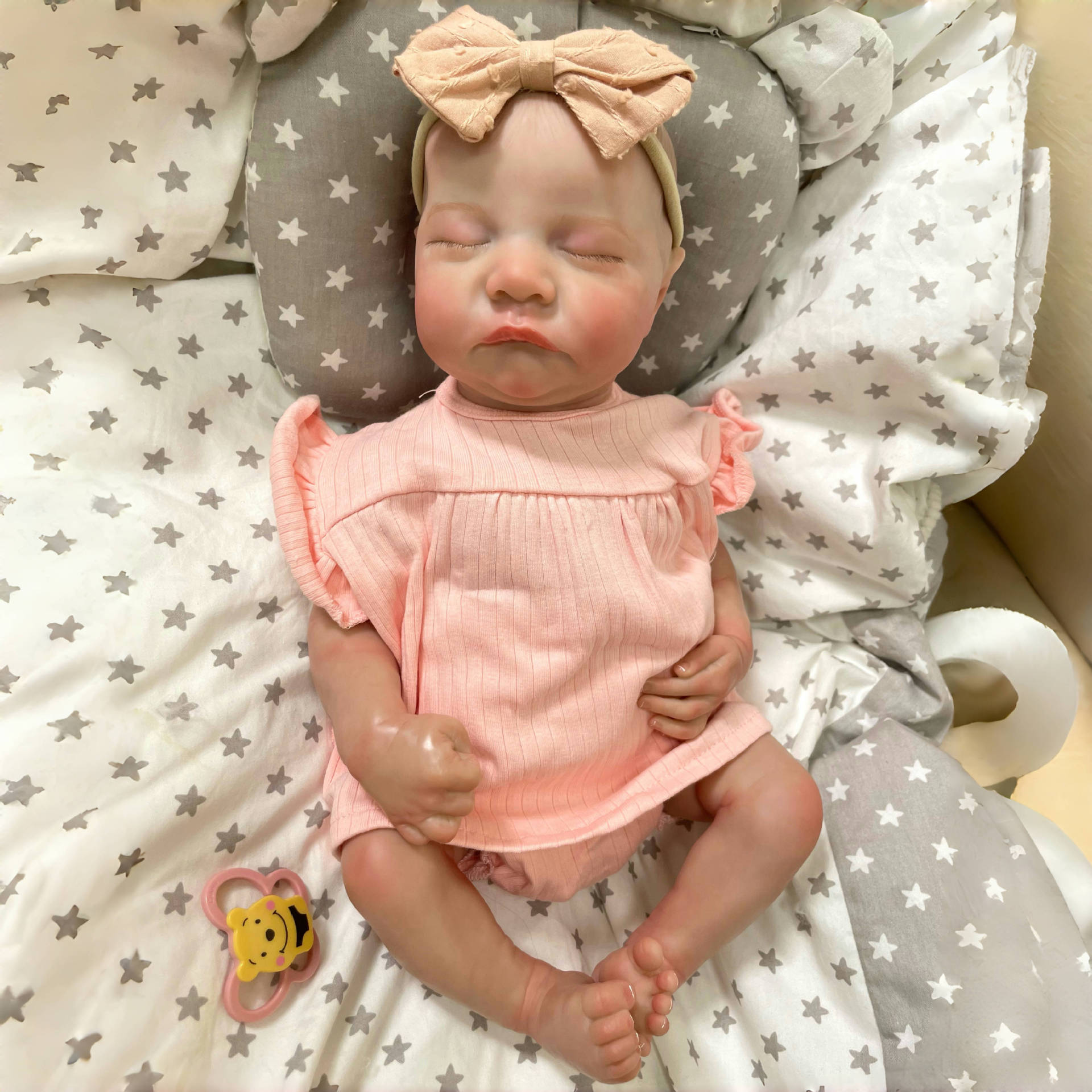 - Hand-painted hair and calm sleeping expression create a warm and friendly appearance